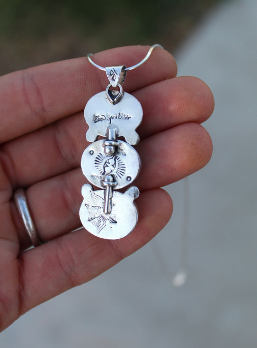 Sterling silver, White water turquoise and Pink conch shell pendant.